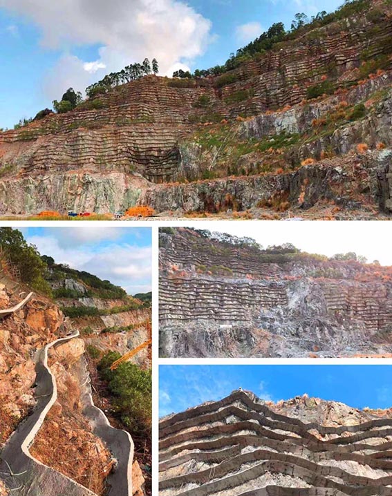 项目地坐落于海南省三亚市陵水黎族自治县长水岭的西面山体,原为采石场,共有4个宕口,此次中铁十七局市政公司携手江苏八达园林,以现状地形地貌为基础,充分利用区域内现有的植被与矿山资源,对2号矿坑进行生态系统恢复及景观风貌恢复。该山体生态修复项目于2018年5月开工,历时10个月,于今年7月完工。